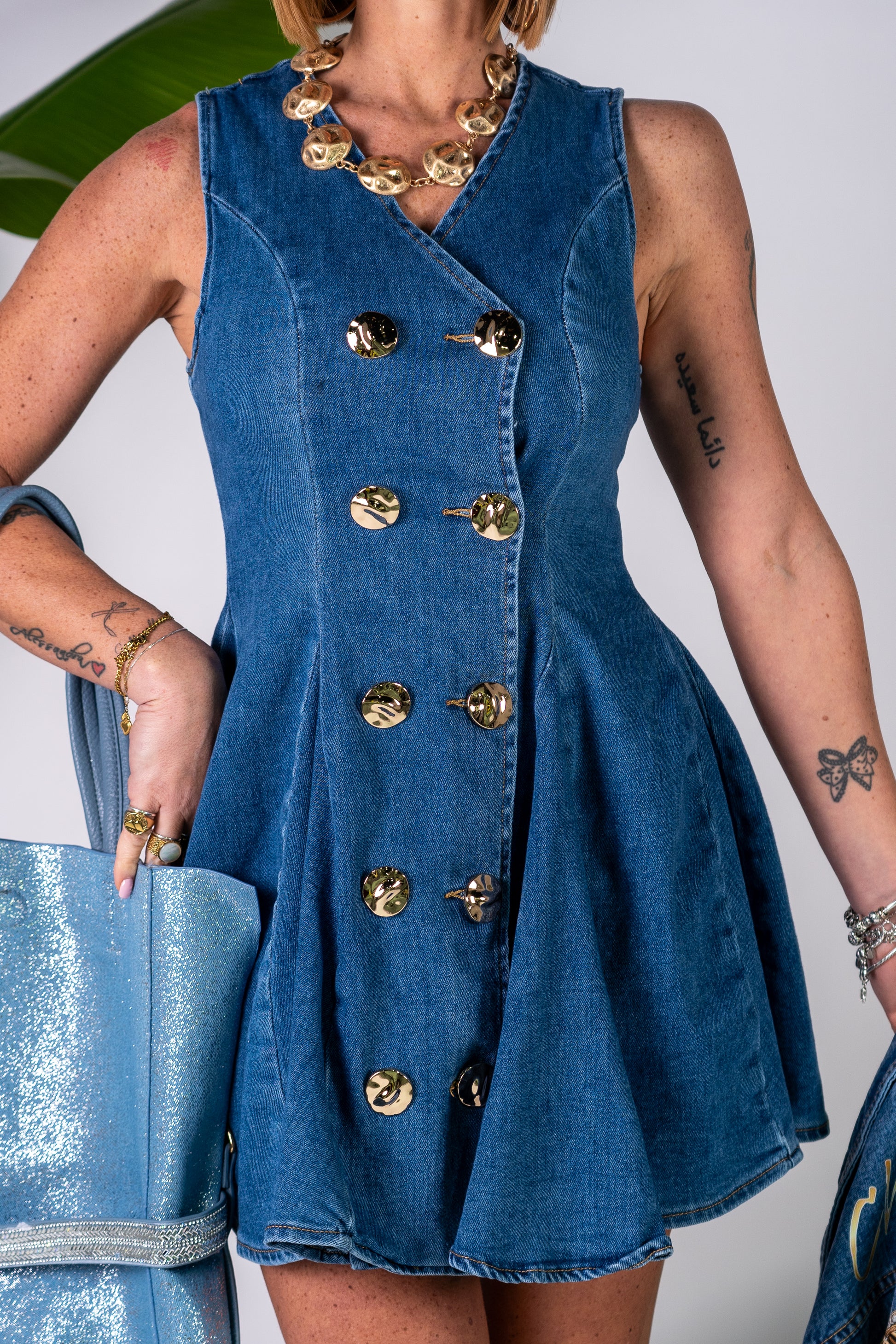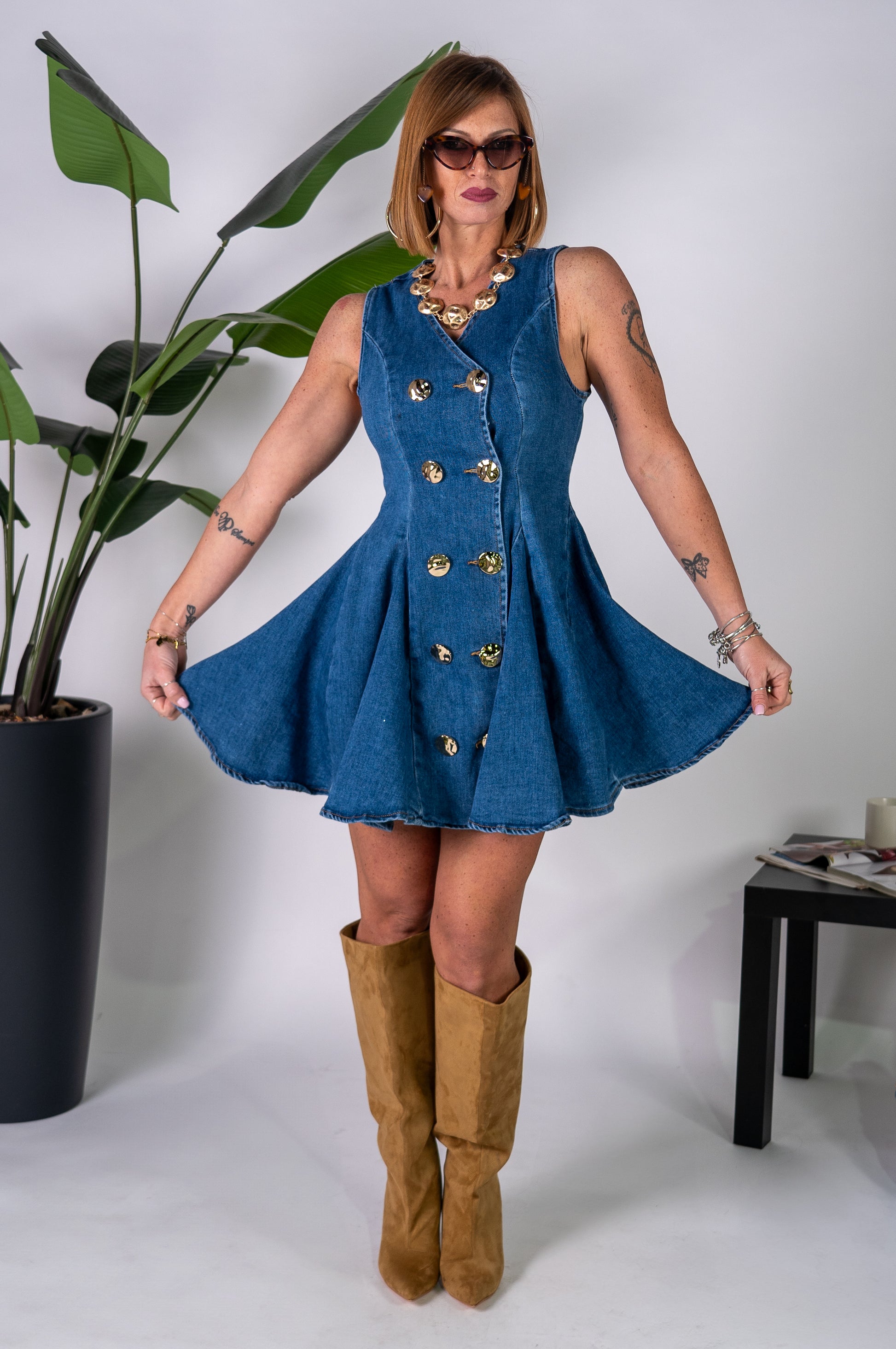 Abito in denim, doppiopetto con bottoni oro !