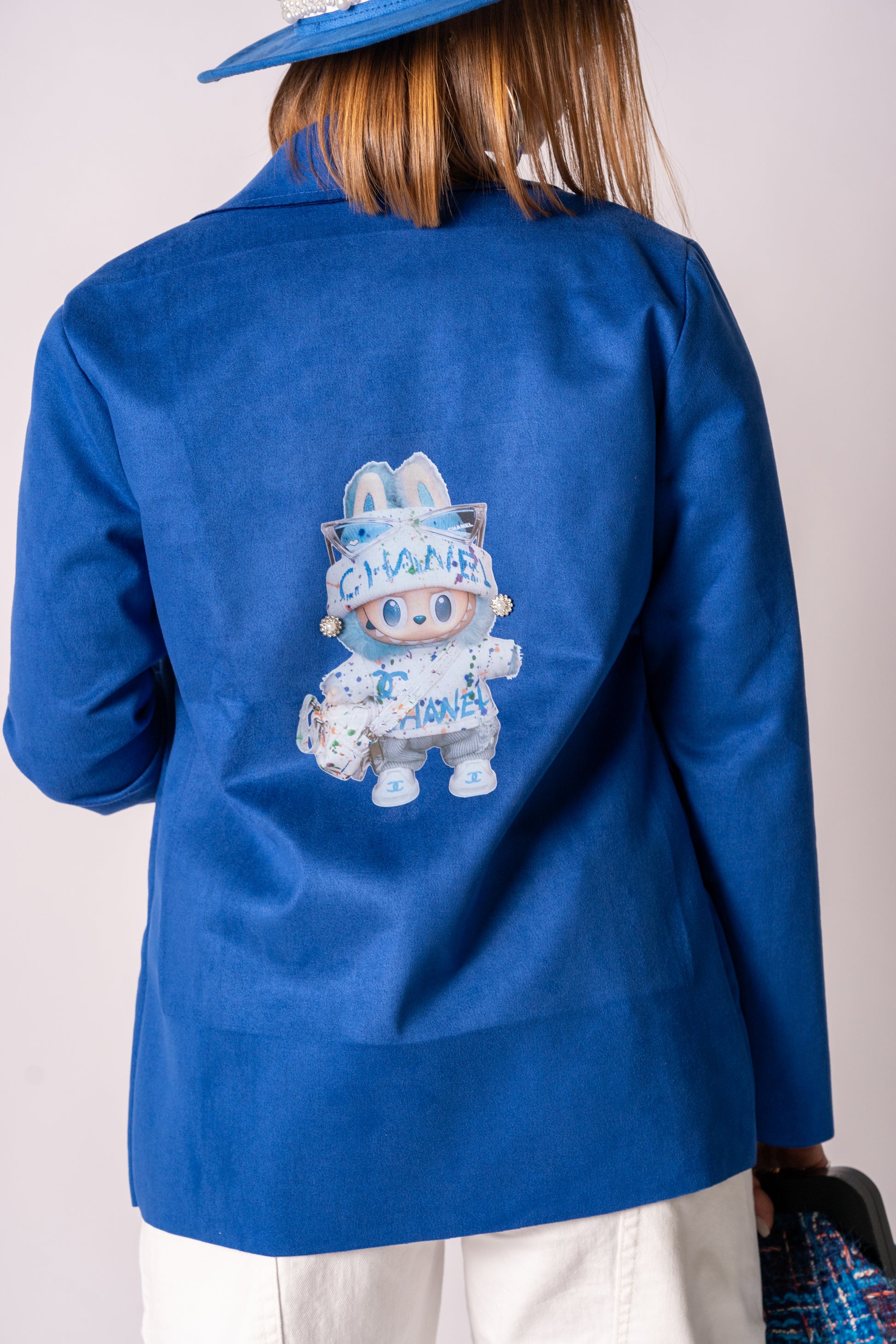 Blazer in dainetto con taschini, stampa Labubu e applicazioni!