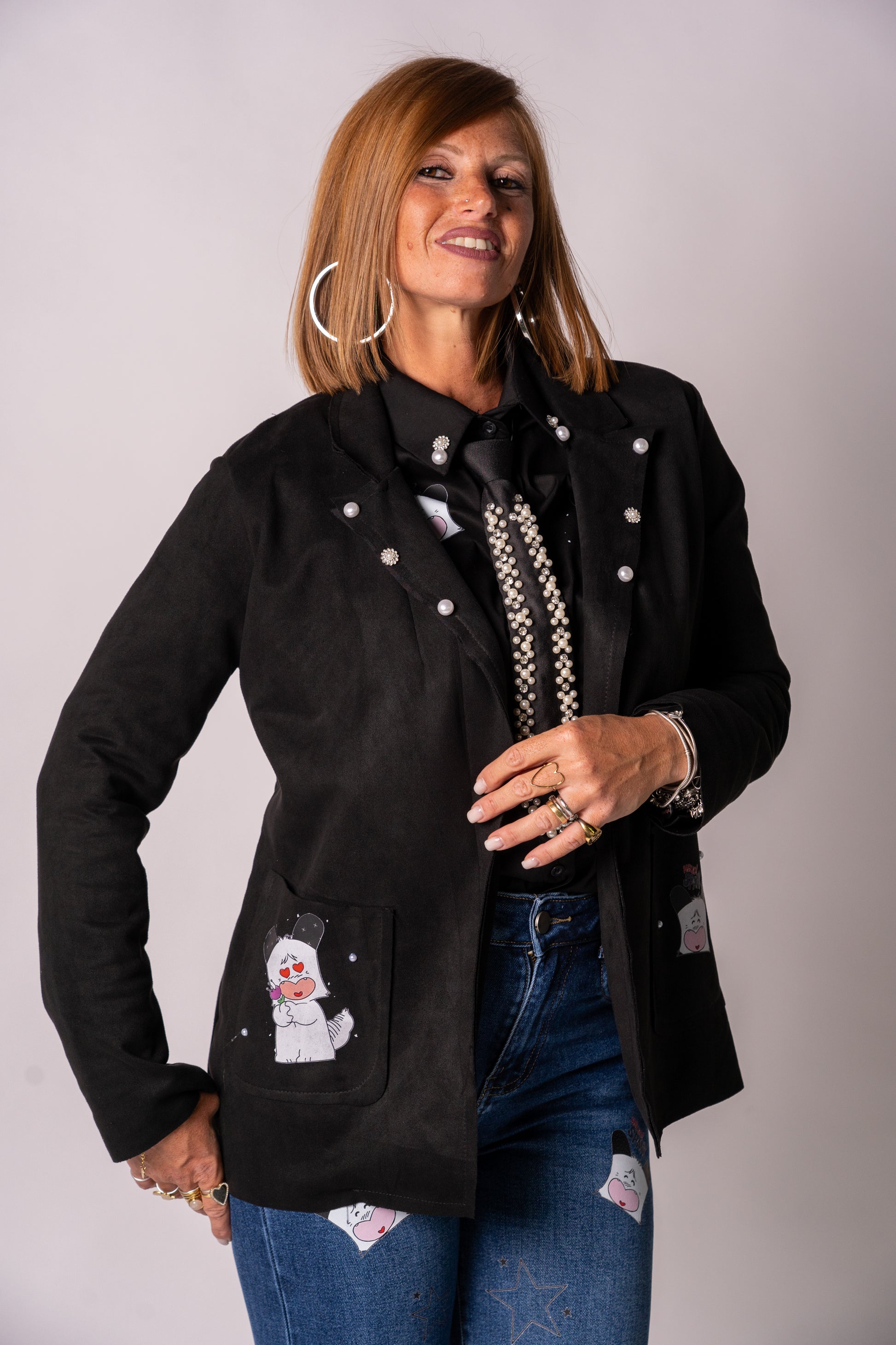 Blazer in dainetto con taschini e stampe Hello Spank, Handemade by Sally!