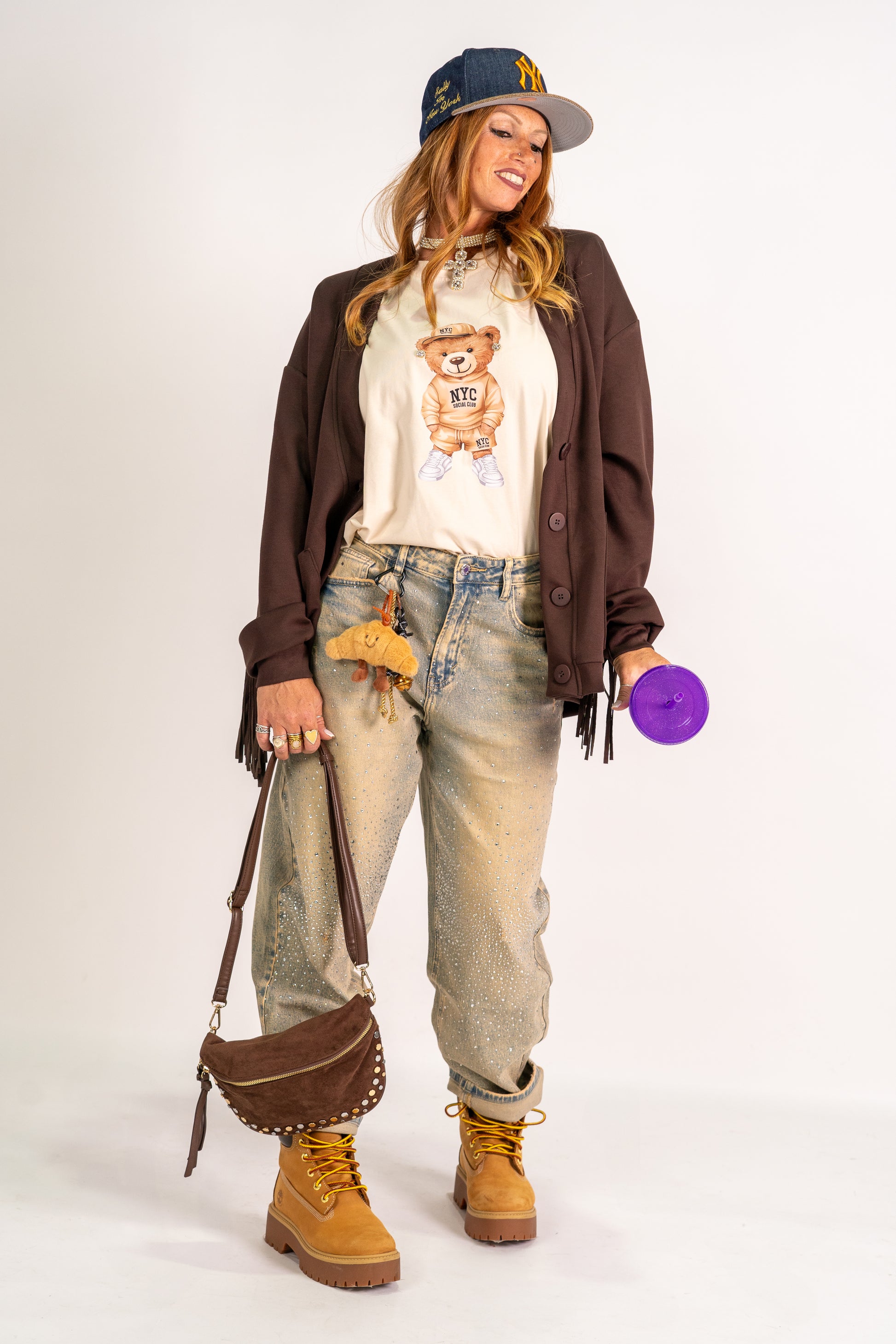 Borsa in camoscio con borchie e tracolla