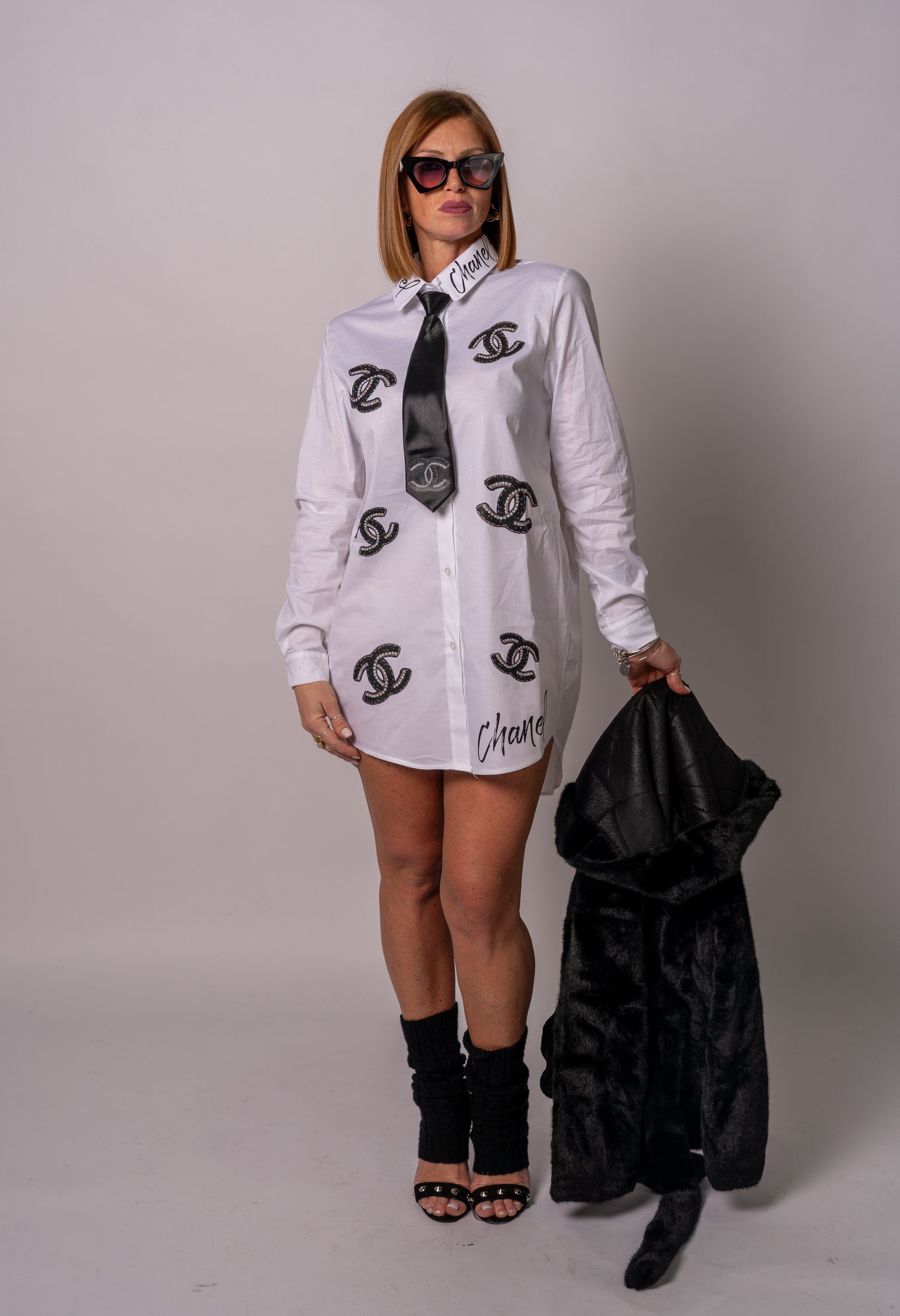 Camicia Lunga in cotone Con stampe Chanel! Taglia unica veste fino ad una taglia 50!