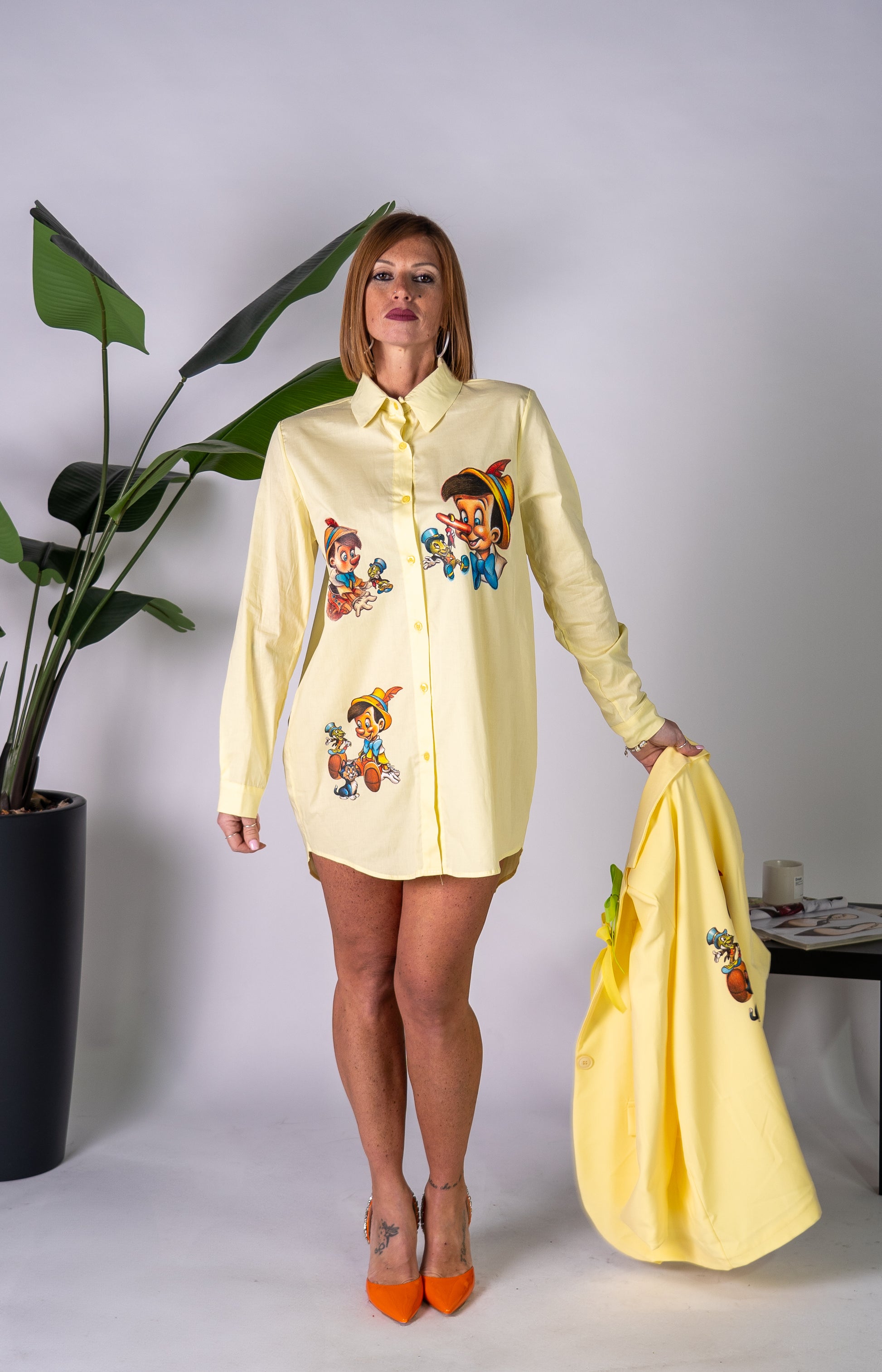 Camicia lunga gialla con stampe Pinocchio handemade by Sally!