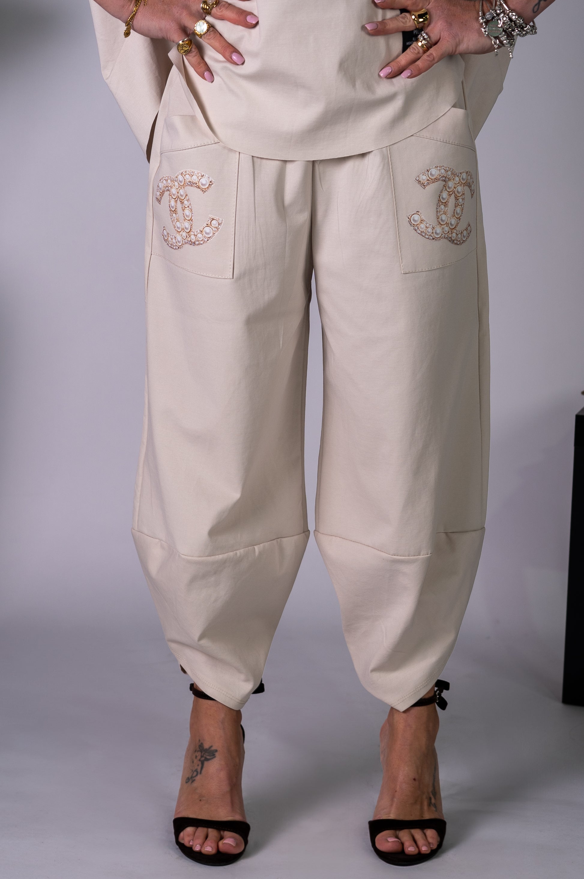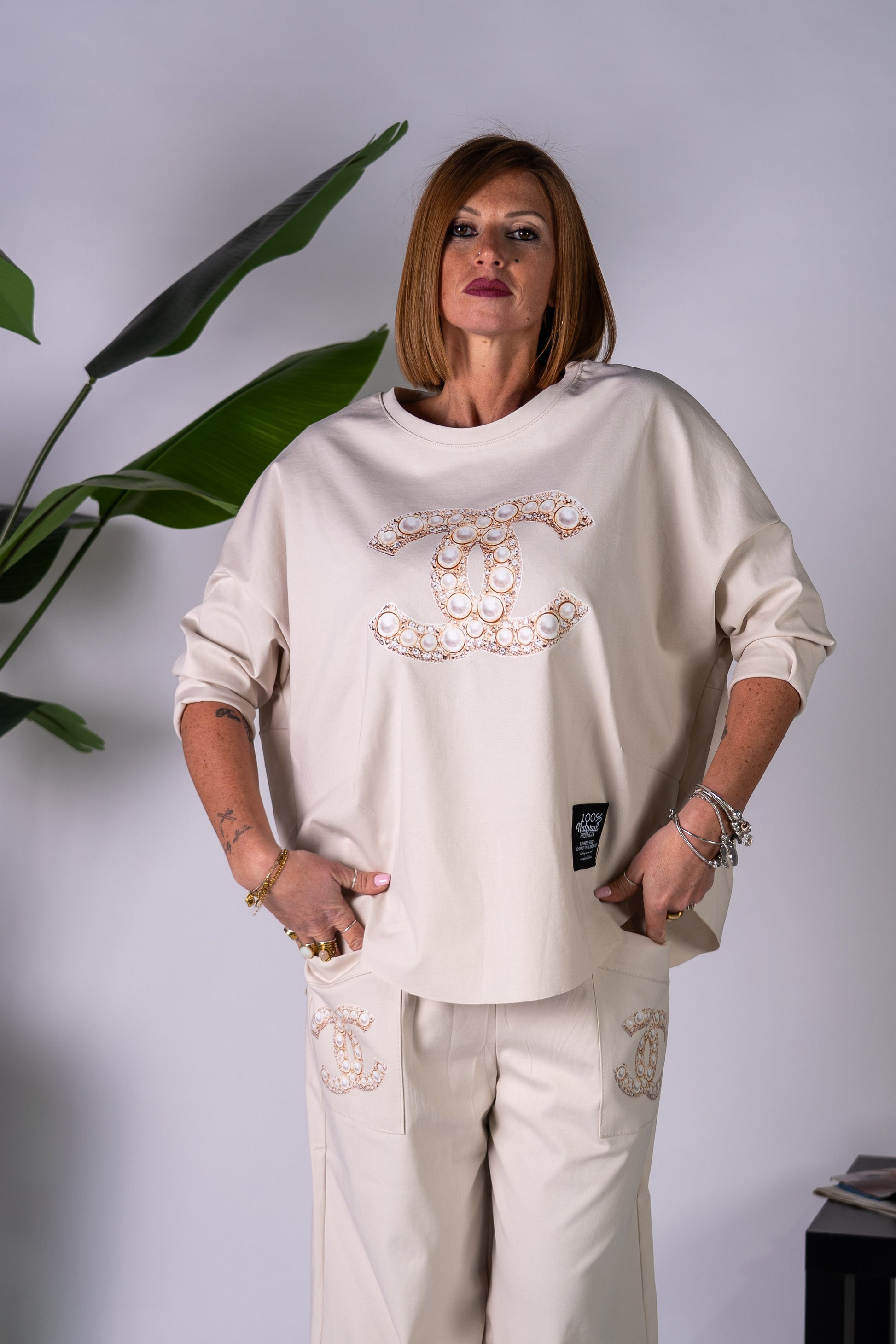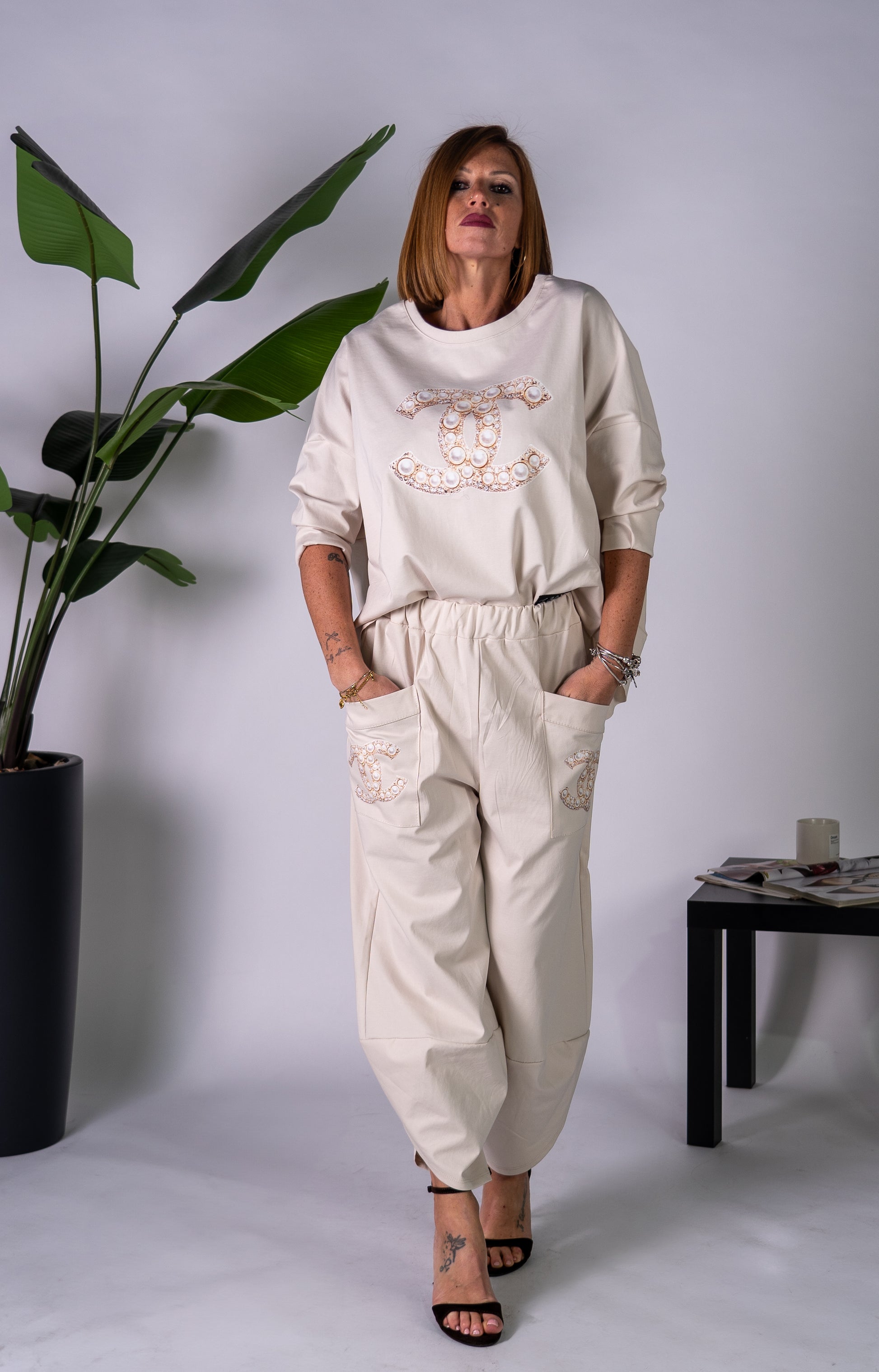 Coordinato composto da pantaloni Cavallo basso e maglia over con stampe handemade by Sally!