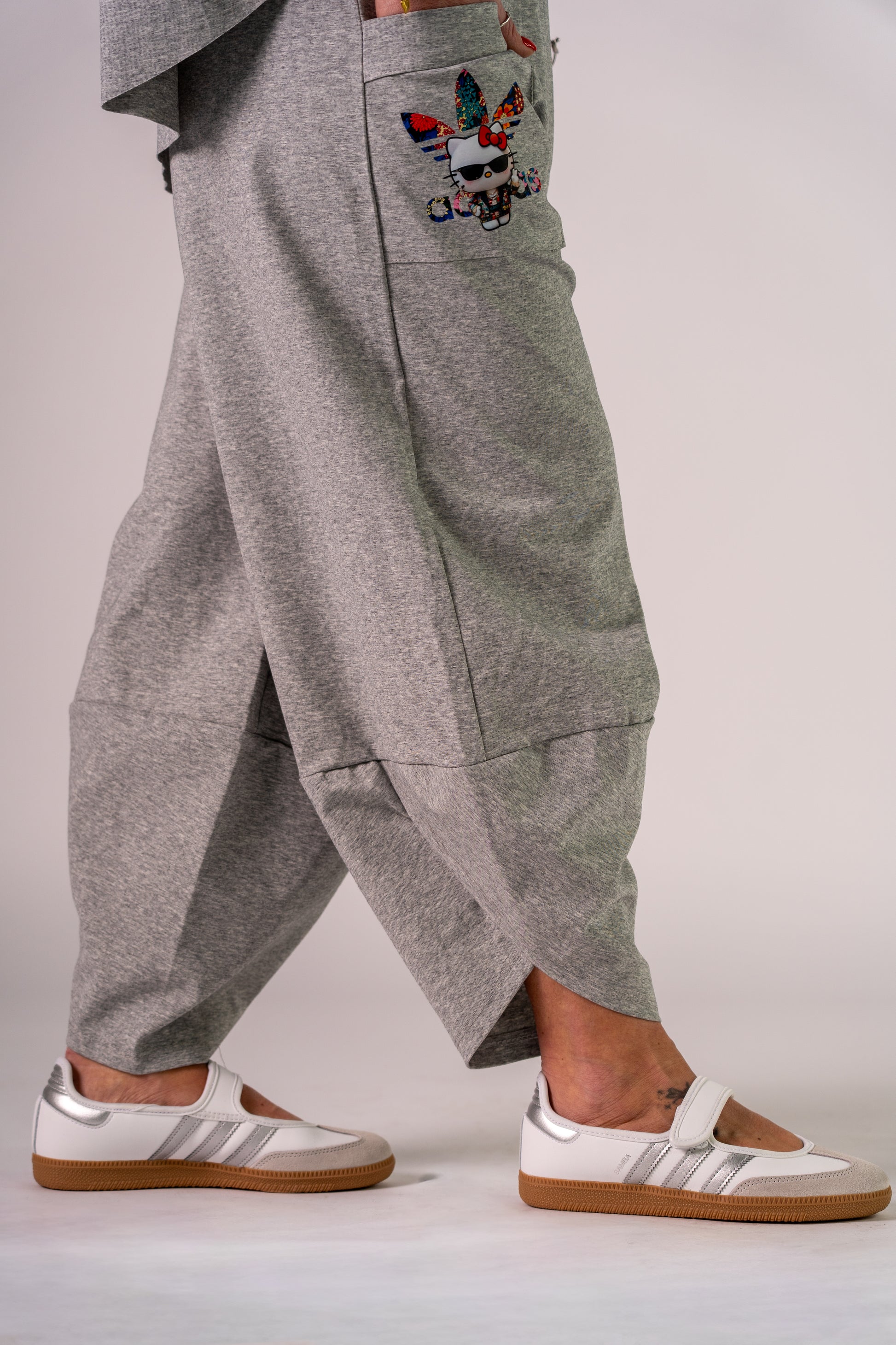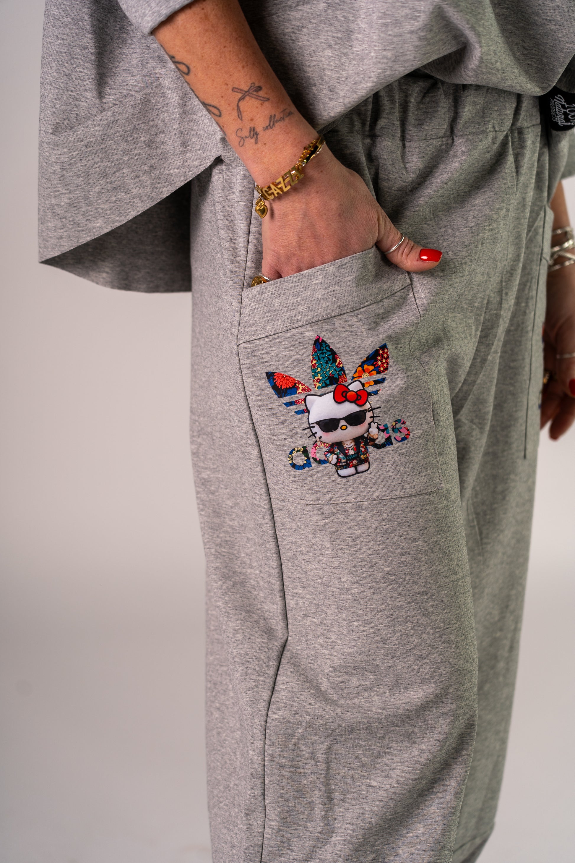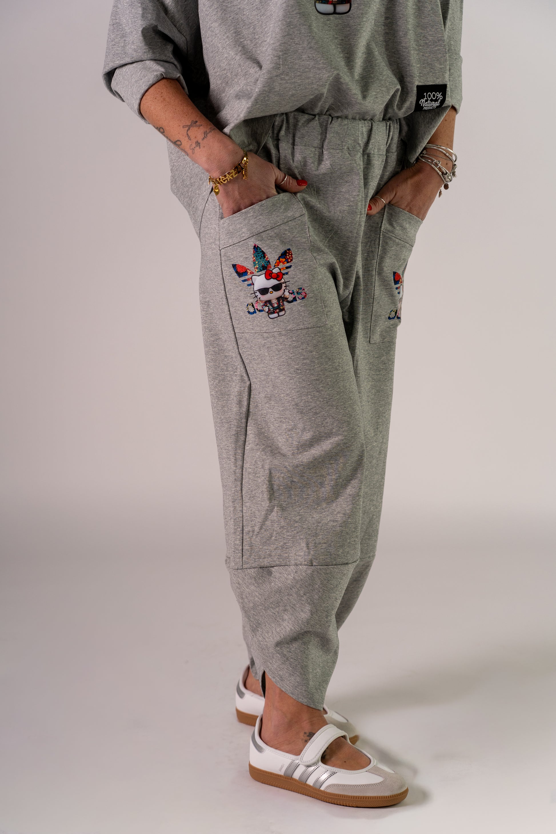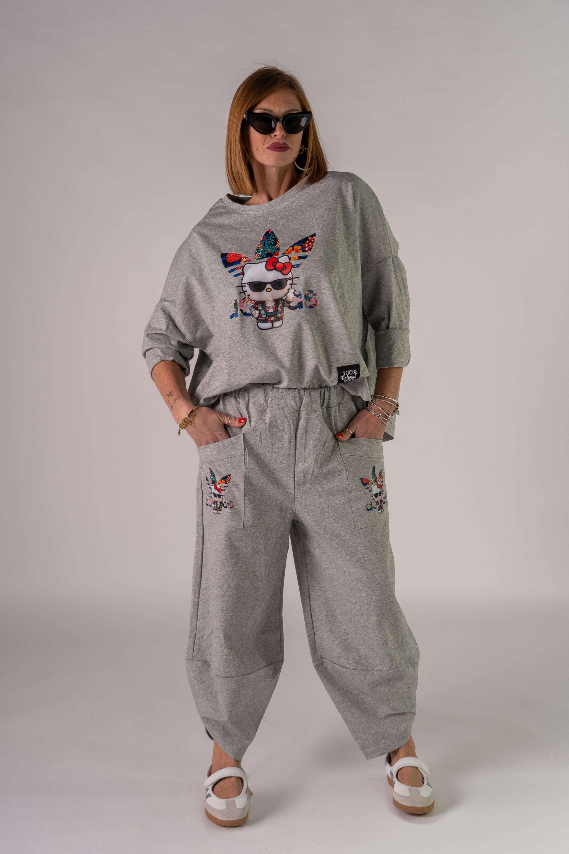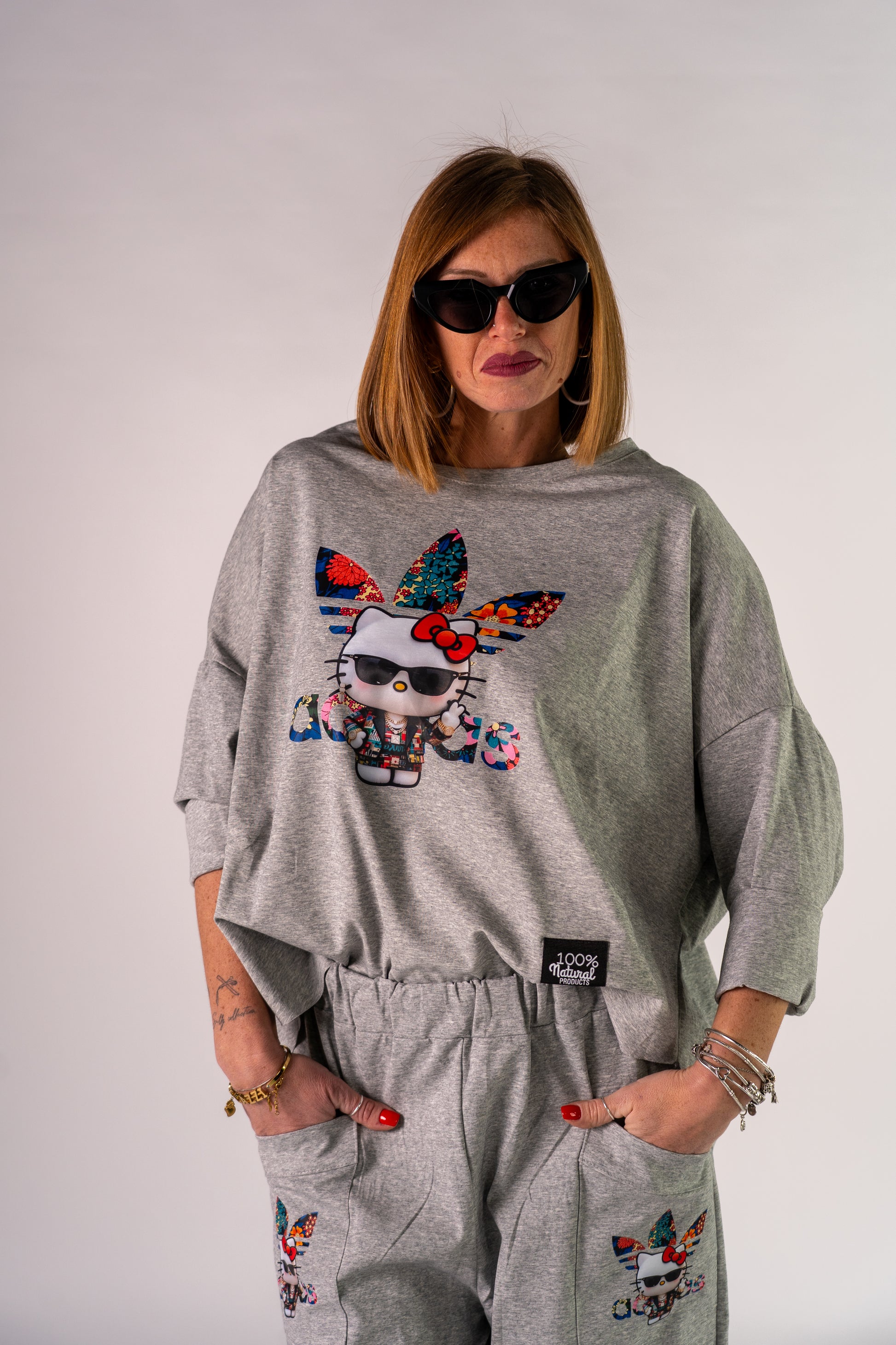 Coordinato in viscosa composto da maglia over taglio vivo e pantaloni con elastico in vita , stampa handemade by Sally!