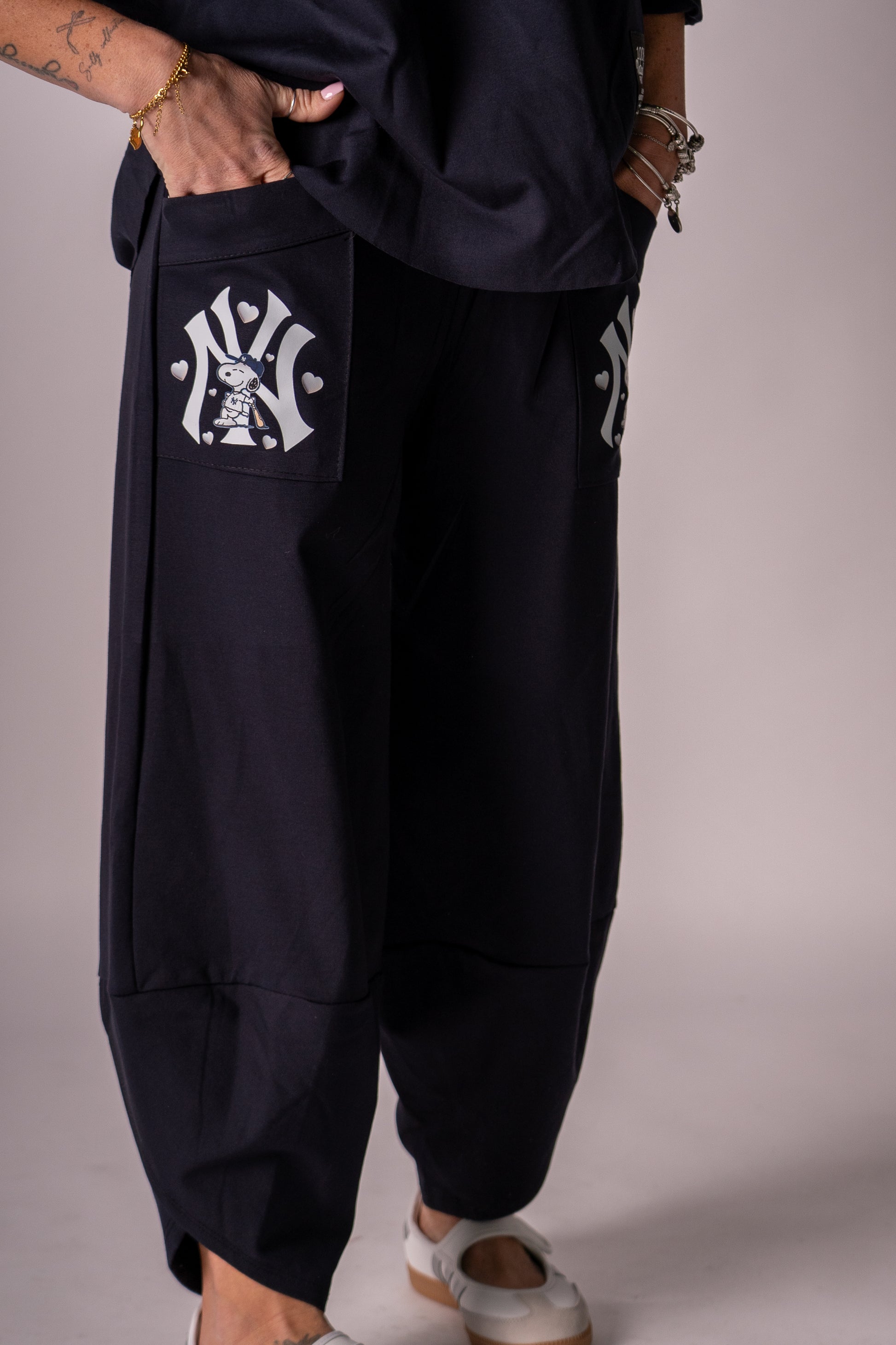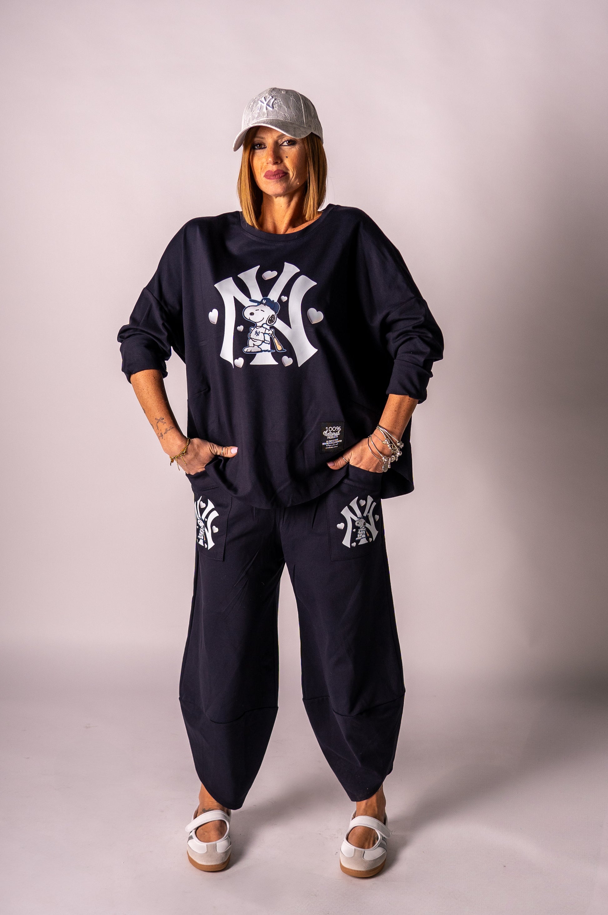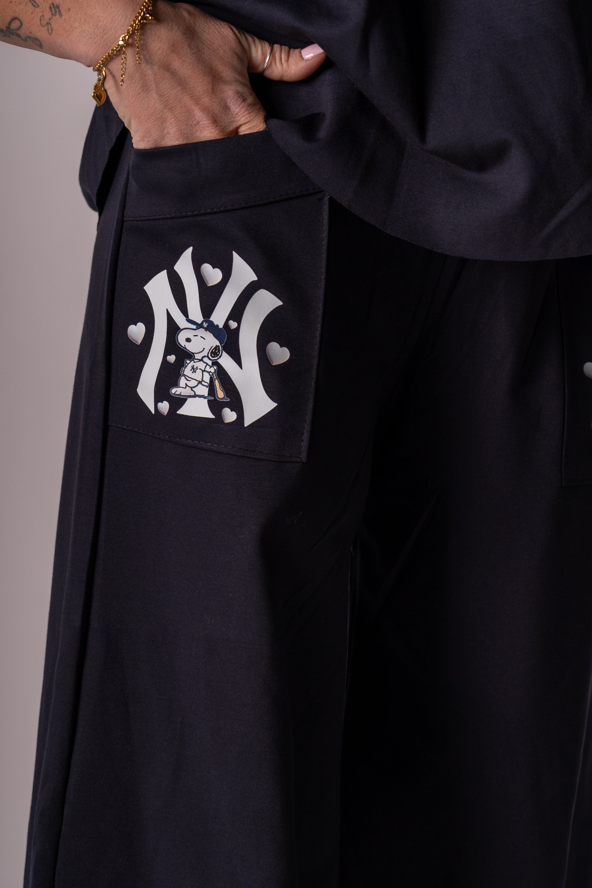 Coordinato composto da maglia over e pantaloni cavallo basso con stampa Snoopy Yankees!