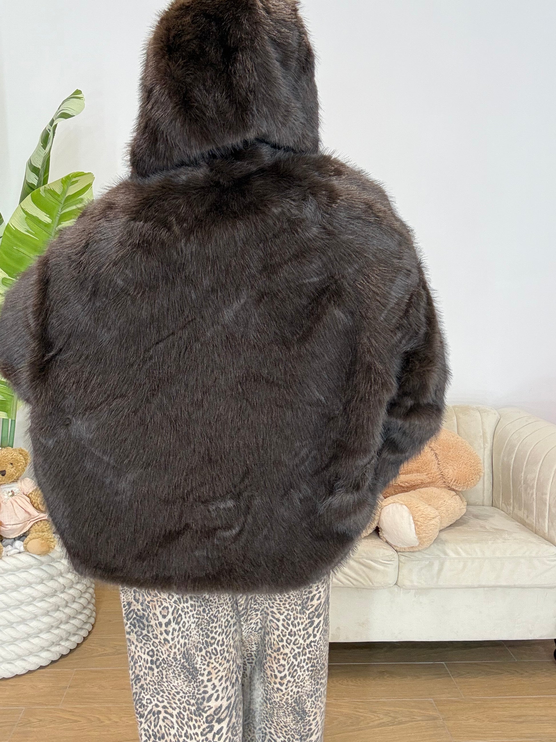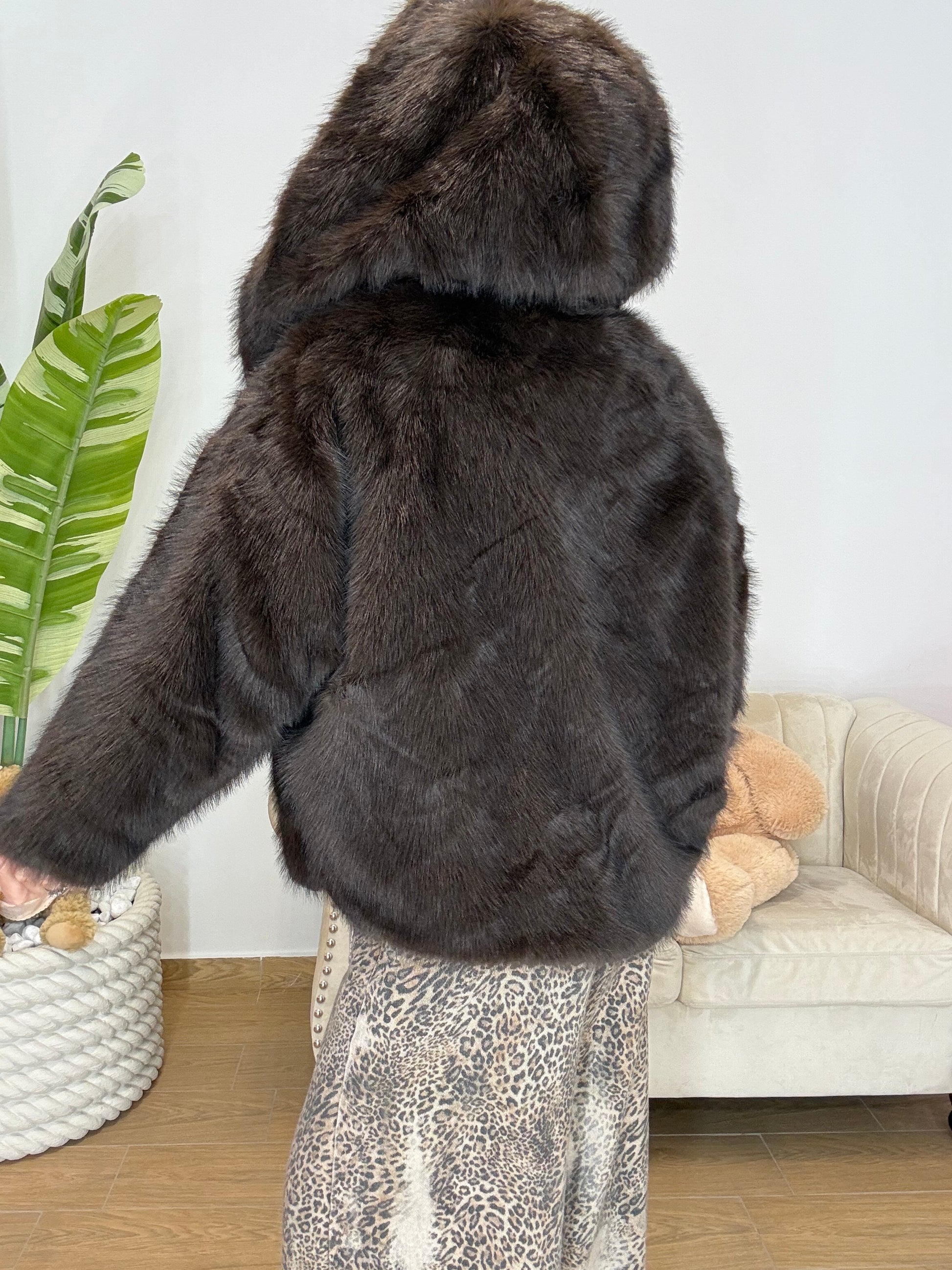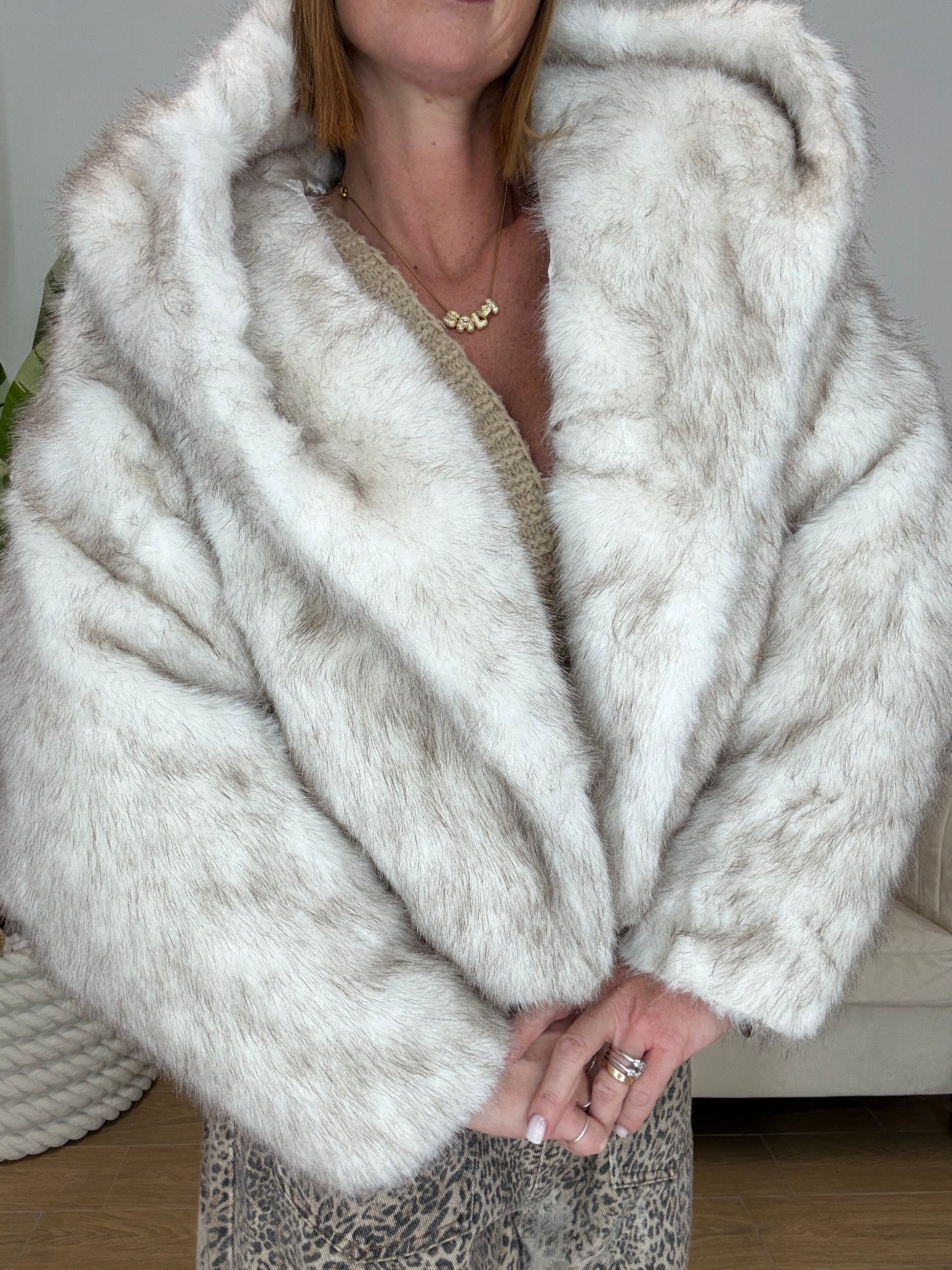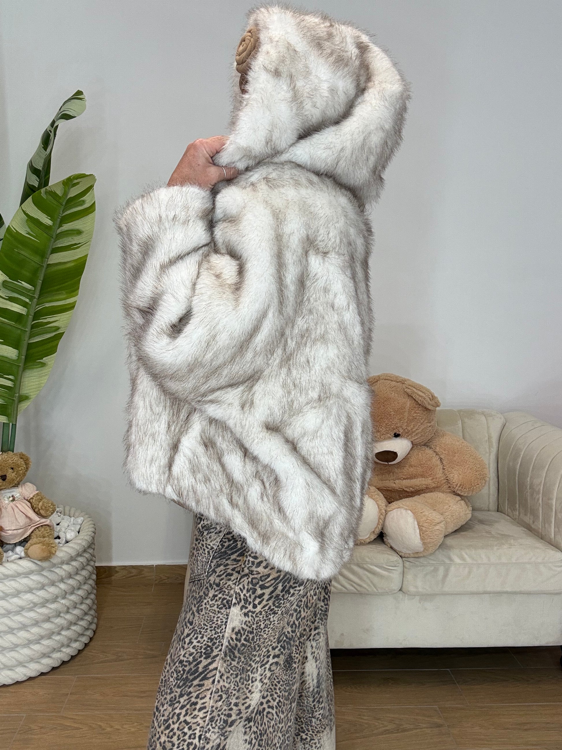 ECOPELLICCIA sciallata con mega cappuccio,foderata all’interno ,taglia unica veste fino ad una taglia 48!