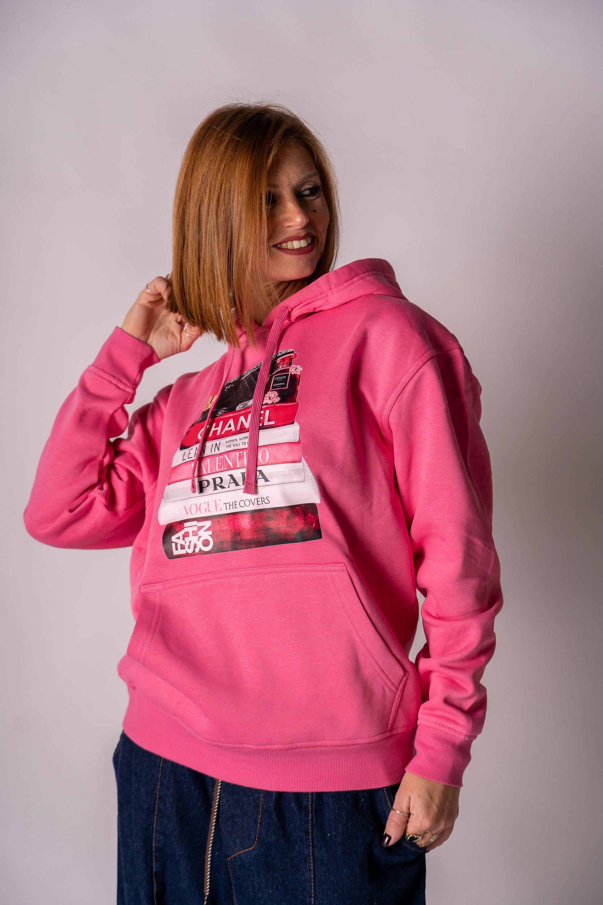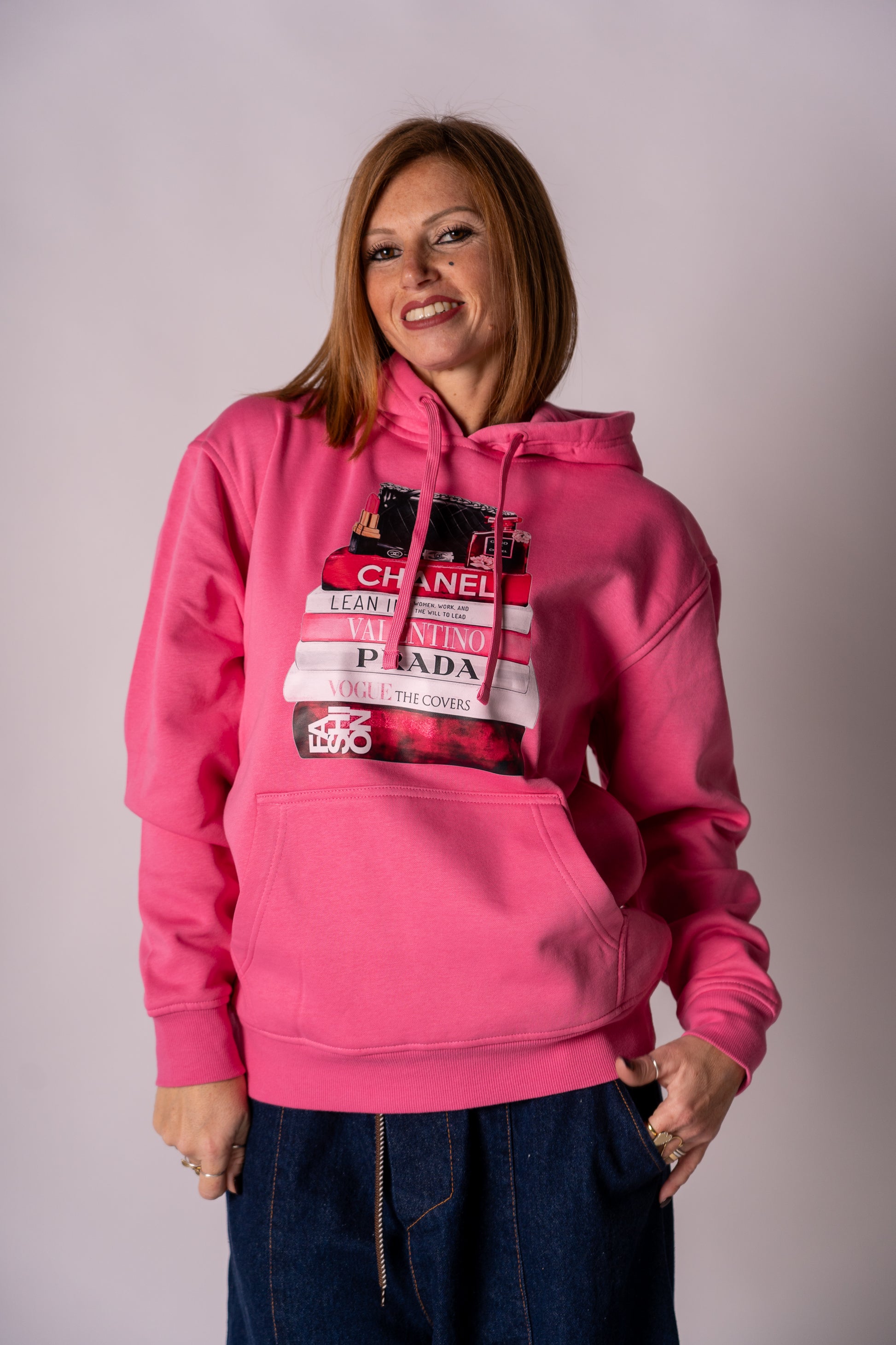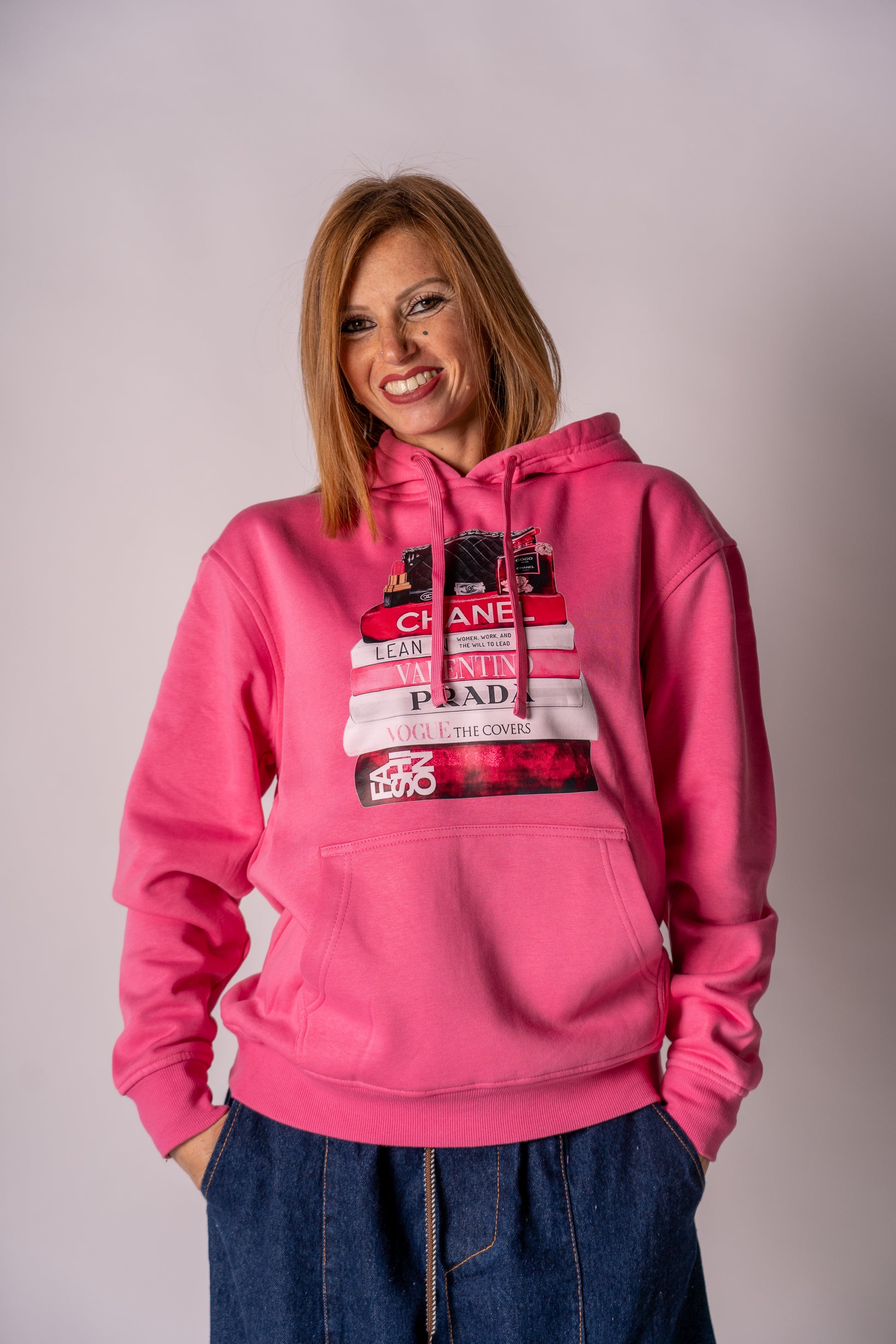 Felpa con tascone e cappuccio felpata all’interno con stampa libri Griffe!