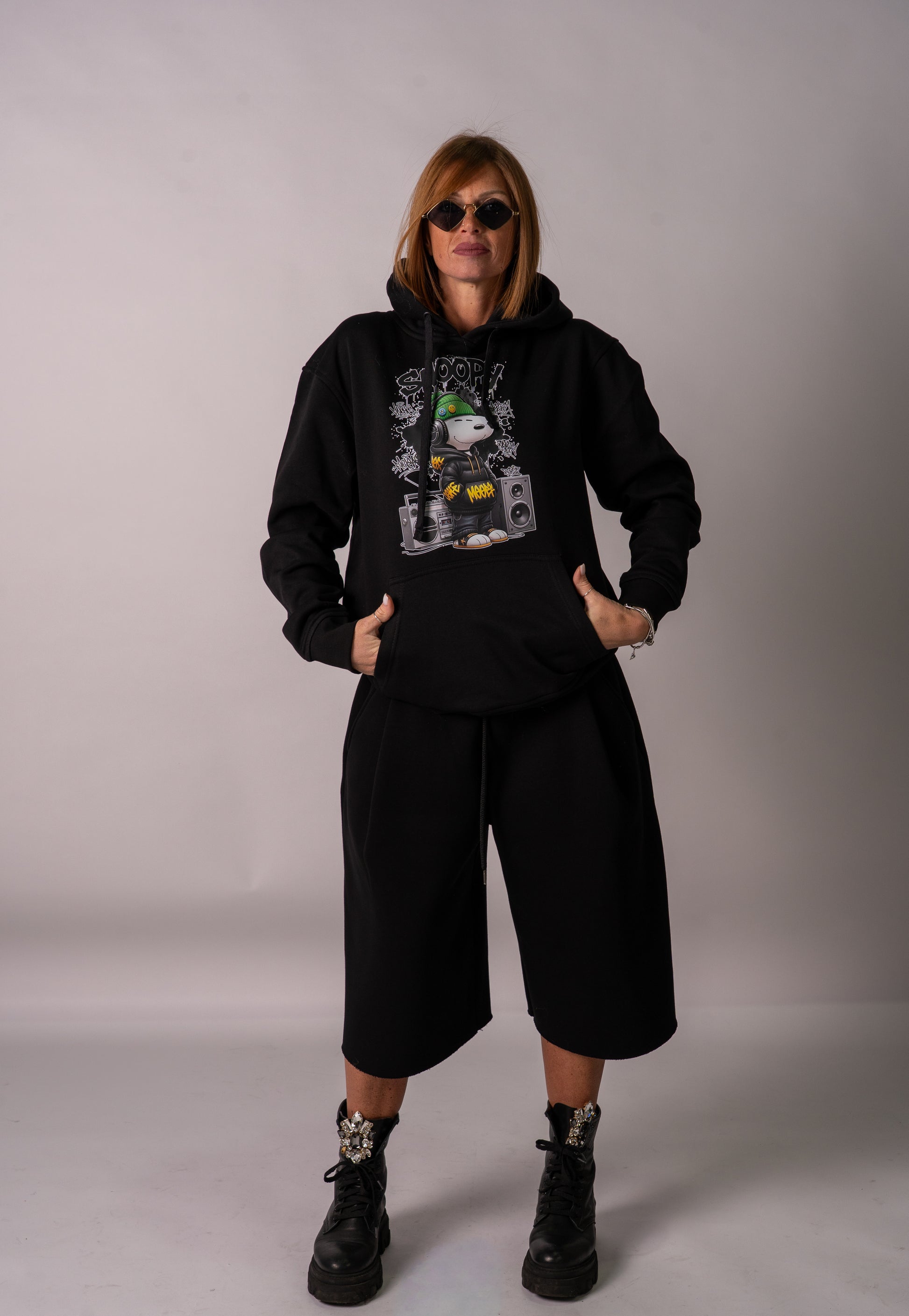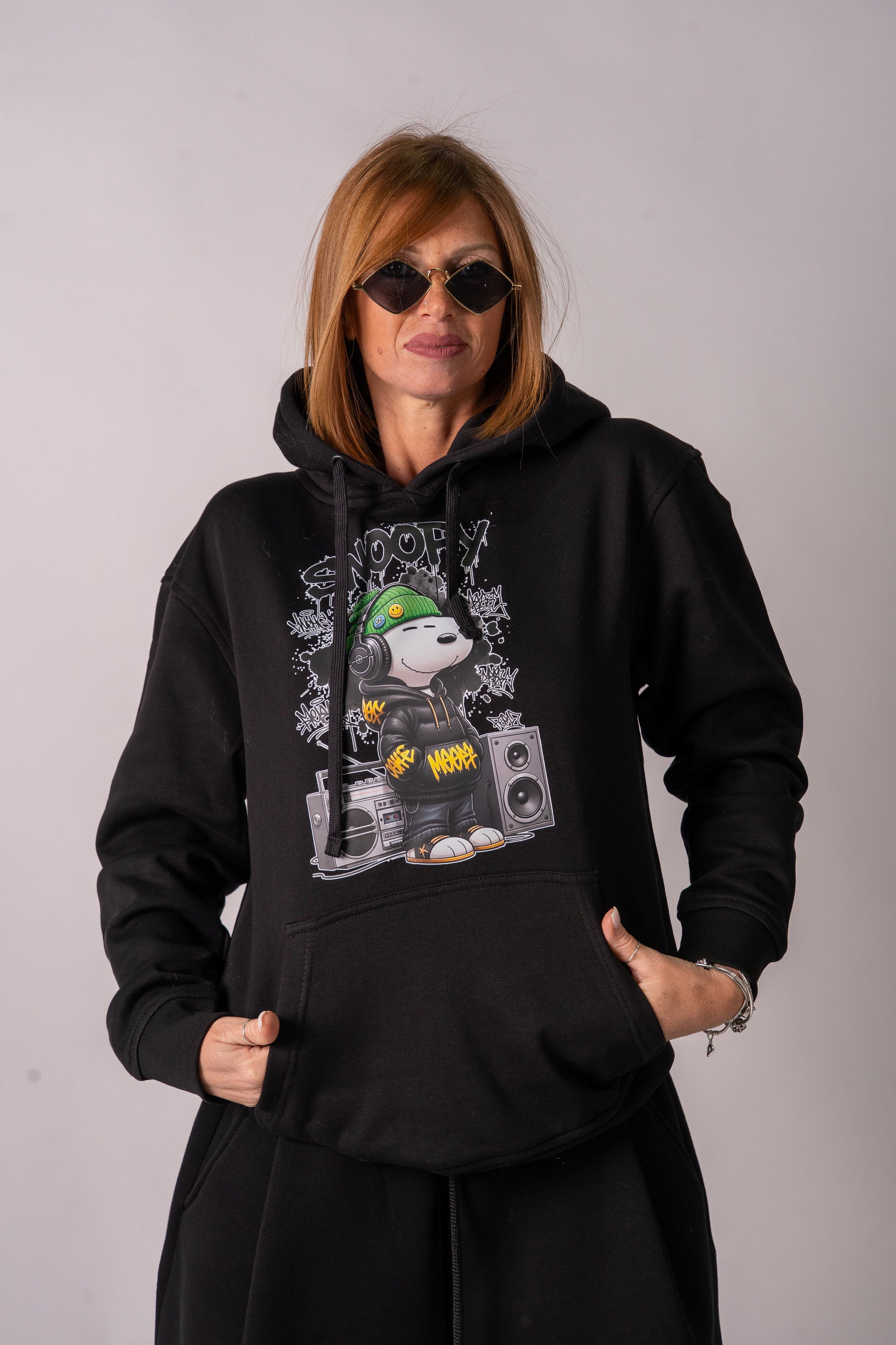 Felpa con cappuccio tascone Felpata all’interno con stampa Snoopy rock handemade by Sally!