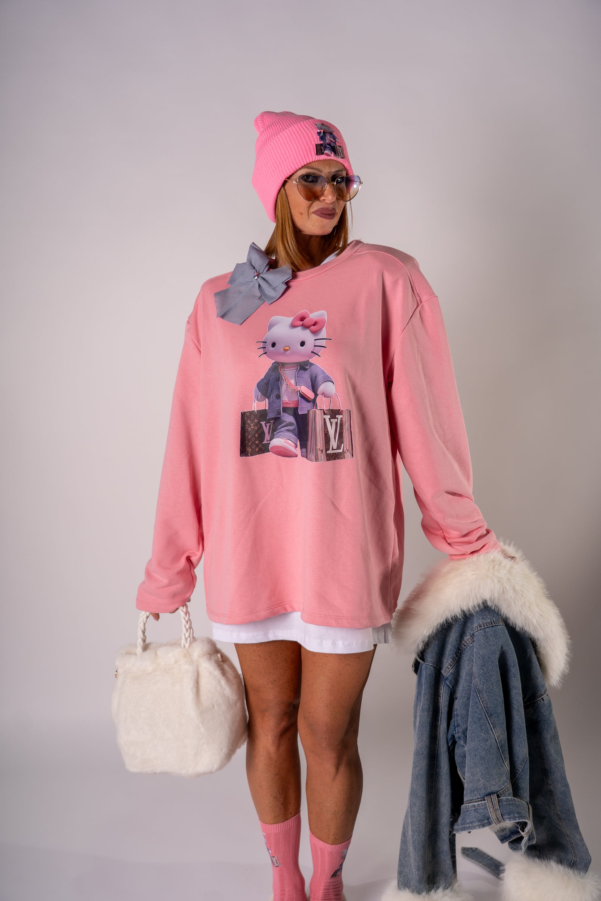 Maxi felpa in cotone con spalline, stampa kitty shopping handemade by Sally!