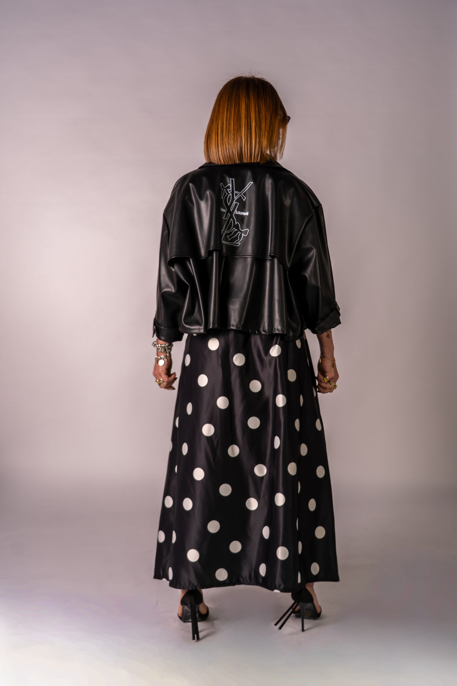 Giacchino camicia in ecopelle con manica tre quarti e bottoni di chiusura, stampa handemade by Sally!