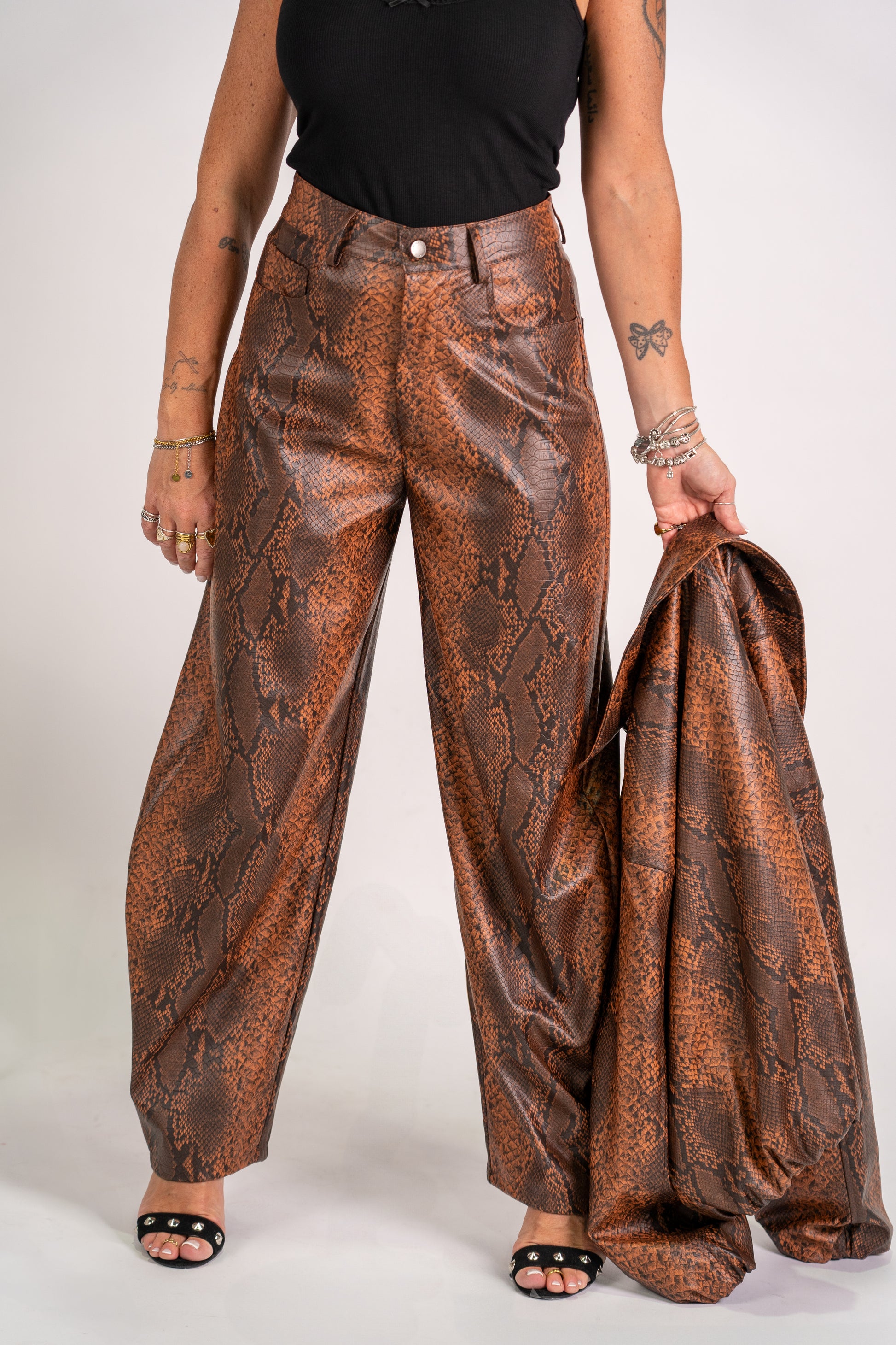 Pantaloni in ecopelle fantasia pitone semi ballon