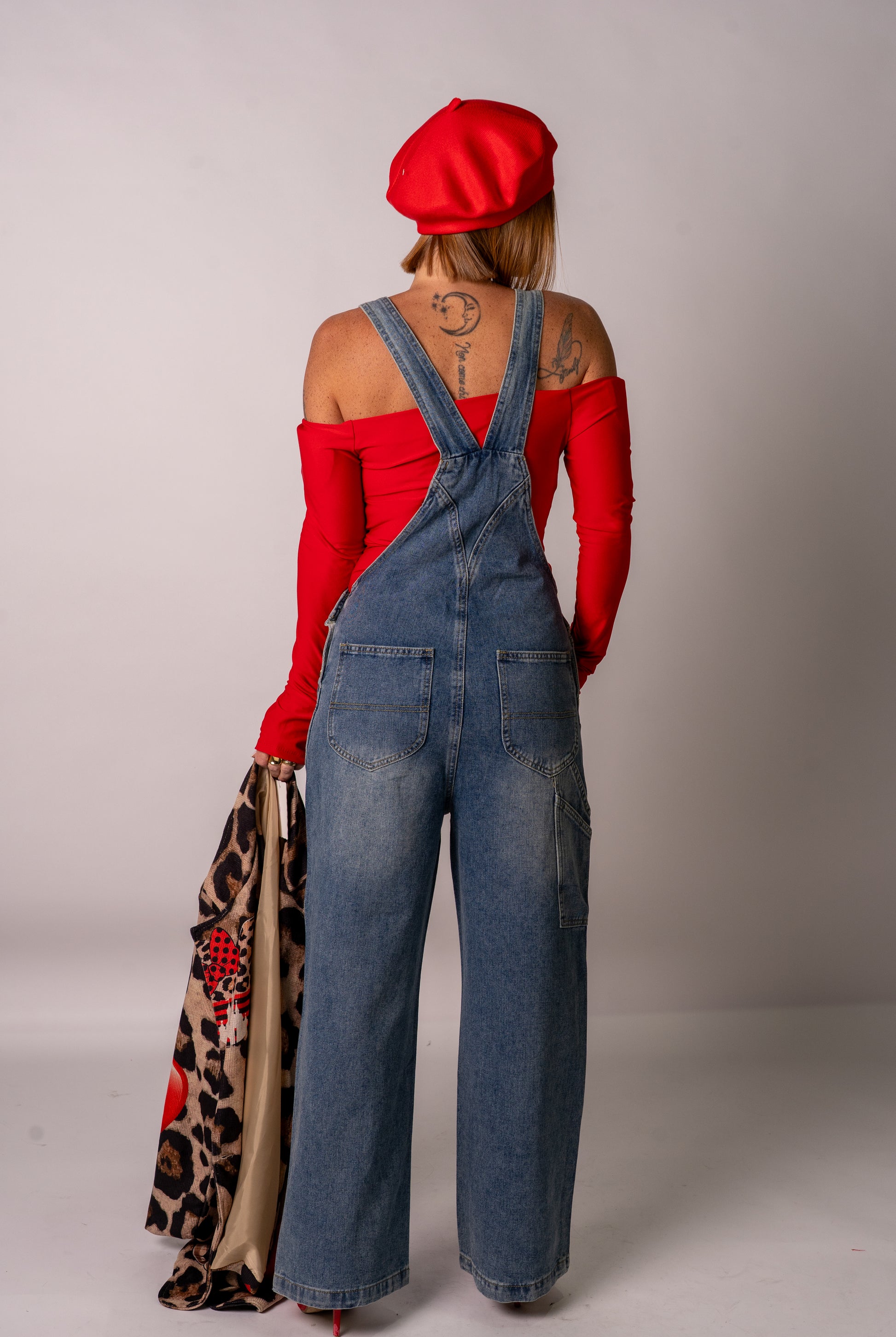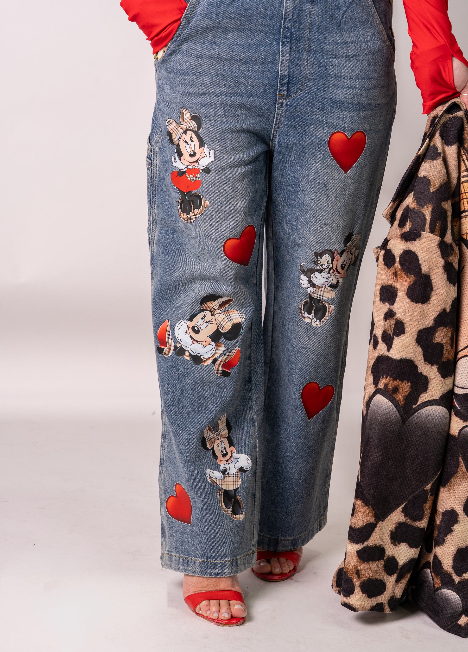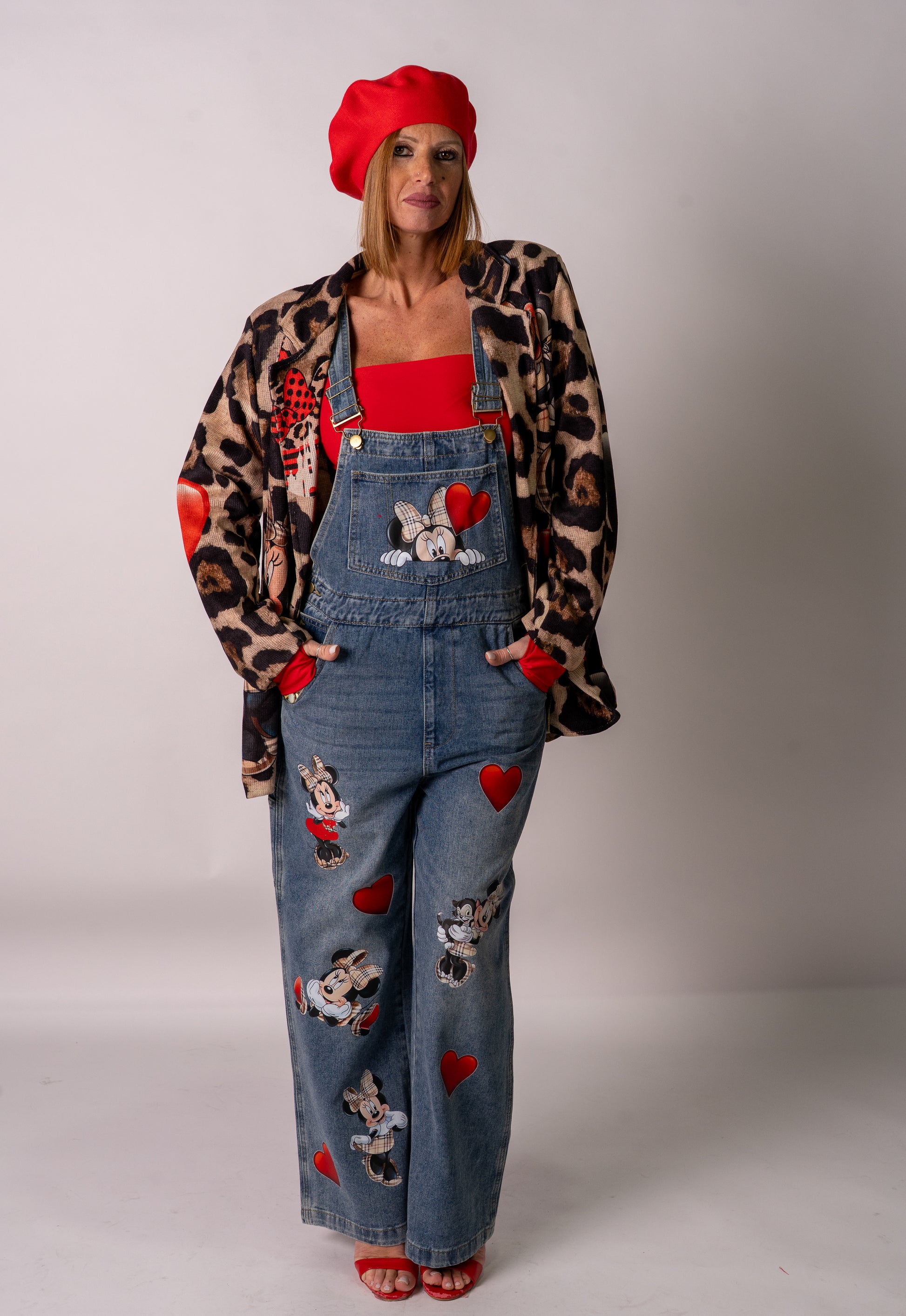 Salopette in jeans gamba dritta con stampe Minnie handemade by Sally!