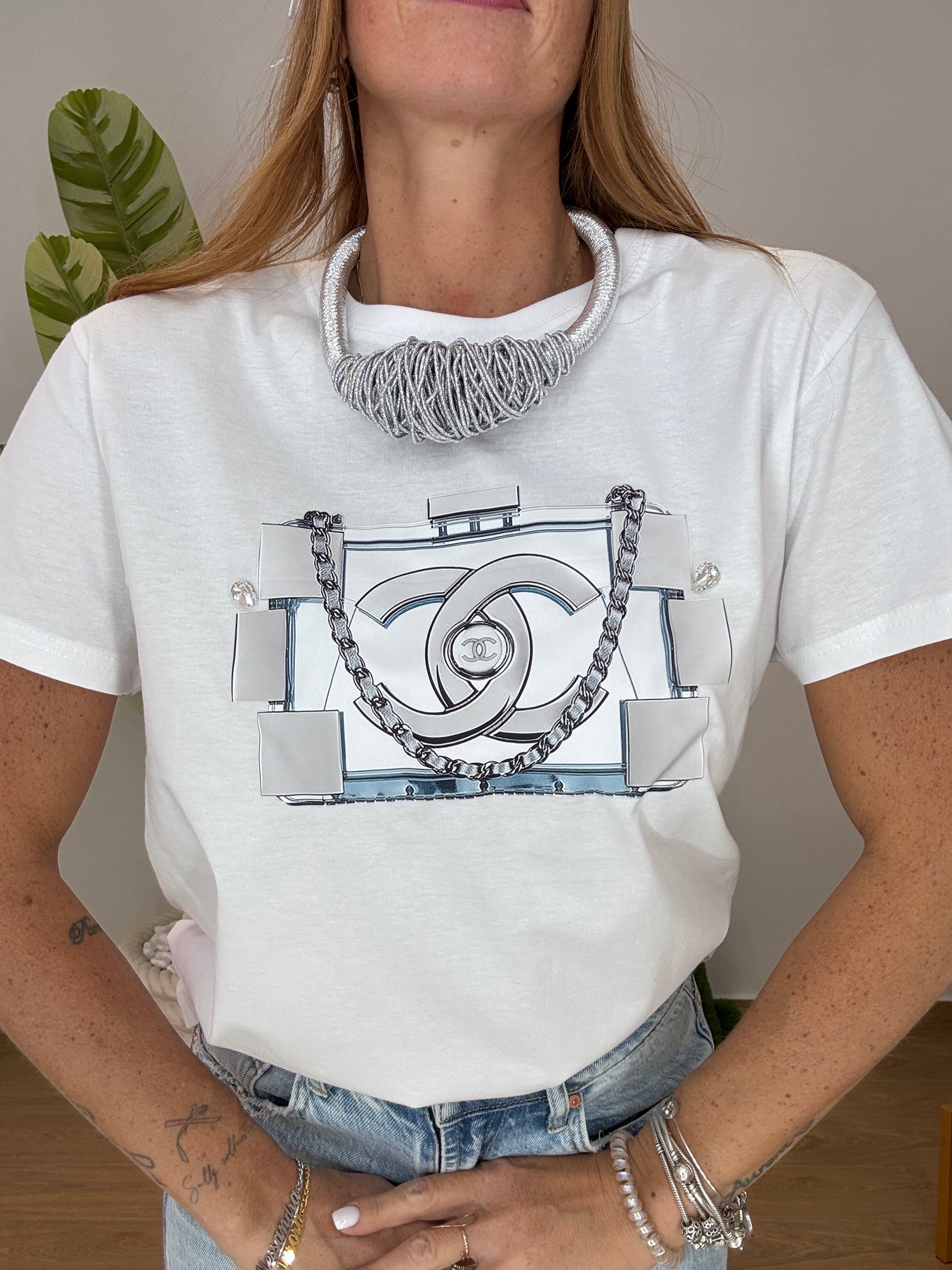 T-shirt in cotone con stampa e decorazioni varie,interamente fatta a mano!
