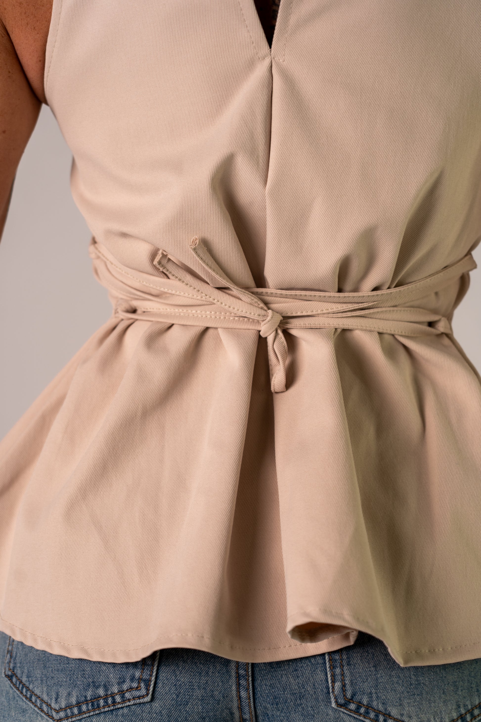 Top con chiusura ad un bottone sul collo e stringhe sul retro per regolarne la larghezza!